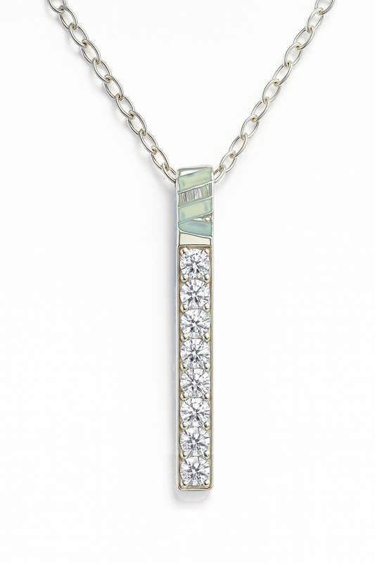 Pave Vertical Gold Bar Pendant & 0.62ct Diamonds