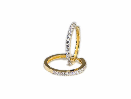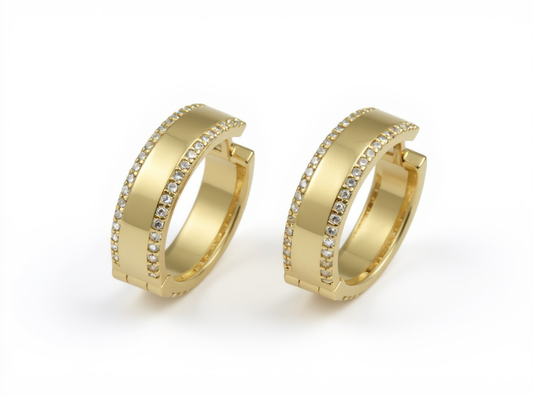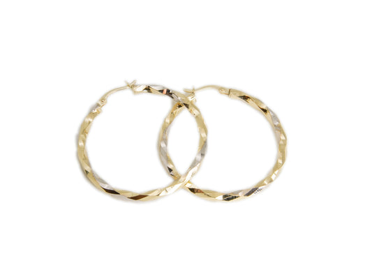 Paire d'anneaux boucles d'oreille en or 2 tons avec motif prisme