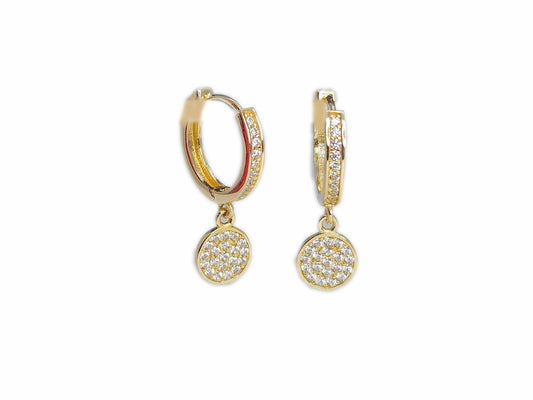 Paire de boucles d'oreilles ronds en or avec halo bleu