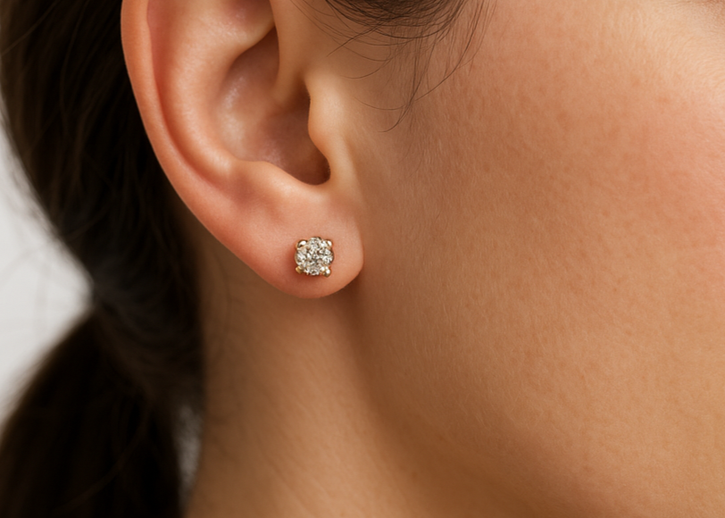 Paire de boucles d'oreilles cluster rondes en or et diamants 0.60 ct