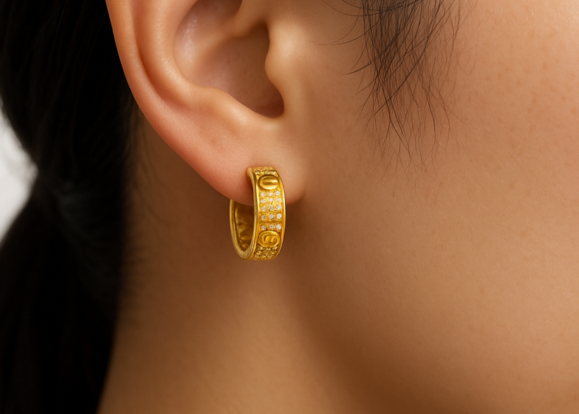 Pair of Gold Huggies With Screw Design