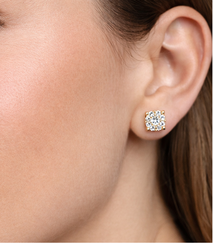 Pair of Round Gold Cluster Studs & 0.46ct Diamonds